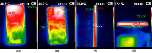 驍龍870正面最高溫度38.8℃,背部最高溫溫度37.6℃,頂部最高溫度34.2℃,底部31.2℃,兩側(cè)中框則為33/34℃左右。驍龍888正面最高溫度39℃,背部最高溫溫度37.2℃,頂部最高溫度37.7℃,底部32.7℃,左側(cè)中框36.6℃,右側(cè)34.3℃。