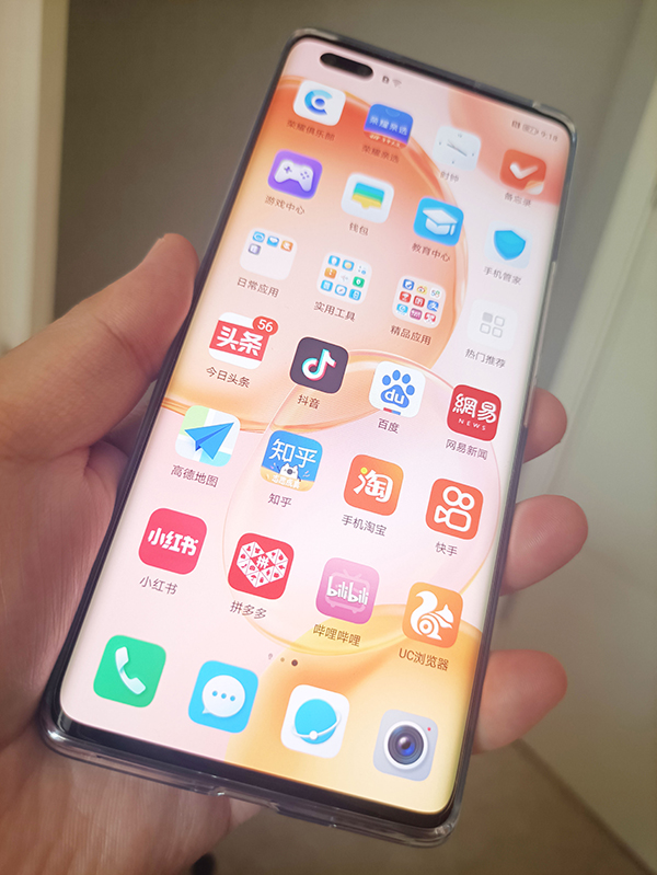 再說(shuō)榮耀50 Pro的正面,雙曲面屏幕,其實(shí)和榮耀30 Pro差不多,但R角之處的過渡更完美,手感也更舒適。