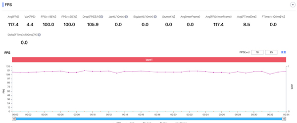日常應(yīng)用方面,開啟屏幕刷新率智能切換,中興的調(diào)教是比較保守的,為了最大化提升續(xù)航,很多應(yīng)用都被壓制在了90幀,比如說微博這類型的應(yīng)用,在智能切換刷新率的設(shè)置下,平均能跑到90幀,幀率穩(wěn)定。當(dāng)打開更高幀率時,能穩(wěn)定在接近120幀的左右。90幀的刷新其實(shí)已經(jīng)足夠流暢,這種對于屏幕的調(diào)節(jié)也是可以接受的,畢竟要更多的照顧到整體的續(xù)航能力。