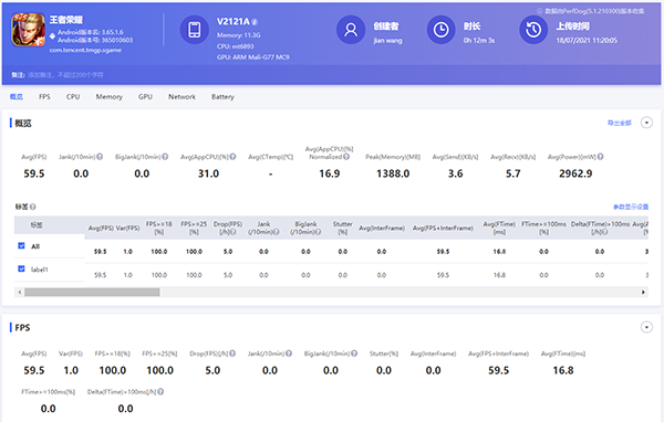 首先我們來看一下聯(lián)發(fā)科天璣1100在《王者榮耀》60幀模式下的表現(xiàn),特效設(shè)置具體如下,手機(jī)未做任何優(yōu)化,游戲時(shí)長約12分鐘,具體實(shí)測成績?nèi)缦拢?