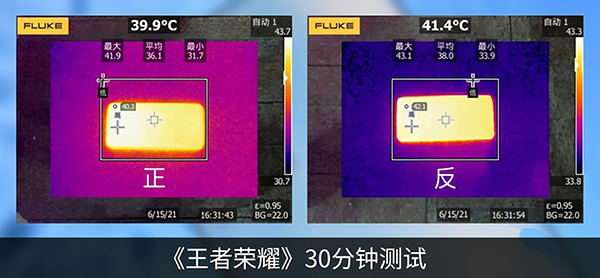 如今夏天到了,如果手機(jī)的散熱不好,我們?cè)谕嬗螒虻臅r(shí)候就會(huì)感到燙手。那么,OPPO Reno6的散熱到底怎么樣呢?實(shí)測(cè)一下就知道了,我們用OPPO Reno6對(duì)《王者榮耀》進(jìn)行了連續(xù)30分鐘的機(jī)身發(fā)熱測(cè)試,結(jié)果發(fā)現(xiàn)《王者榮耀》的發(fā)熱表現(xiàn)非常理想,機(jī)身正面頂部40.3°C,機(jī)身背面靠近攝像頭的位置42.1°C。這個(gè)溫度僅僅比我們的體溫高一點(diǎn)點(diǎn),在玩游戲的時(shí)候完全感覺不到燙手,游戲體驗(yàn)非常好。