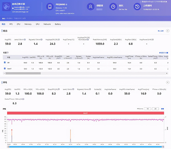 當(dāng)然了,可能你認(rèn)為《王者榮耀》對(duì)配置的要求比較低,那我們就來測(cè)試一款比較吃配置的游戲——《使命召喚手游》,實(shí)測(cè)結(jié)果顯示OPPO Reno6在運(yùn)行《使命召喚手游》同樣穩(wěn)如泰山。最高畫質(zhì)下60幀運(yùn)行,一把排位6分鐘下來平均幀率達(dá)到了59幀,基本沒有比較大的波動(dòng),體驗(yàn)相當(dāng)不錯(cuò)。不得不說,性能強(qiáng)勁的硬件配合無級(jí)穩(wěn)幀技術(shù)的加持,OPPO Reno6游戲全程確實(shí)可以保證平穩(wěn)流暢的游戲畫面,做到體驗(yàn)不打折,綜合游戲體驗(yàn)非常棒。