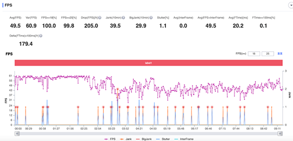 在《和平精英》游戲測(cè)試中,畫質(zhì)為HDR高清+極限幀數(shù)設(shè)置,OPPO Reno6 Pro+的游戲平均幀數(shù)可達(dá)59.9幀,幀率波動(dòng)非常小,畫面很流暢。