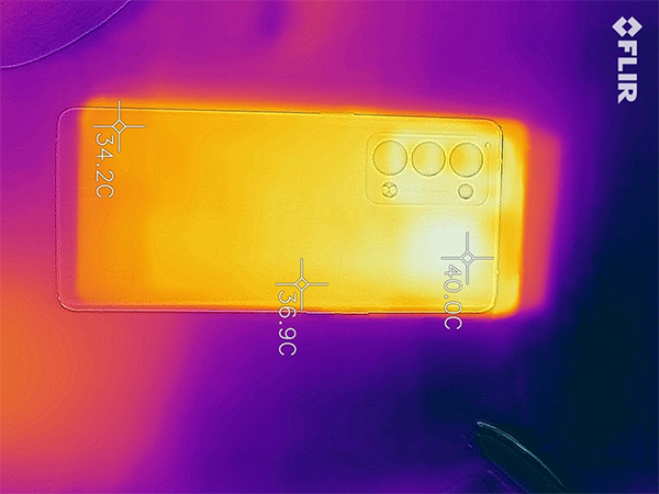 此外在游戲過程中,得益于OPPO Reno6 Pro+搭載的全尺寸VC液冷散熱,使得手機的發(fā)熱表現(xiàn)也十分優(yōu)秀,在進(jìn)行游戲的過程中,機身背面最高溫度也沒有超過40℃,基本上就是比較溫?zé)岬臓顟B(tài),并不會感覺到燙手。