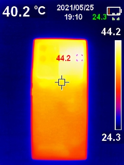 得益于其搭載的6,050mm2石墨片與4,000mm2液冷均熱板,游戲測試過程中機身最高溫度只有44度左右。
