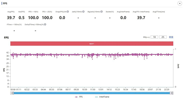 在均衡畫(huà)質(zhì)、超高幀率模式(滿幀40Hz)的《和平精英》里,游戲平均幀率達(dá)到39.7fps。