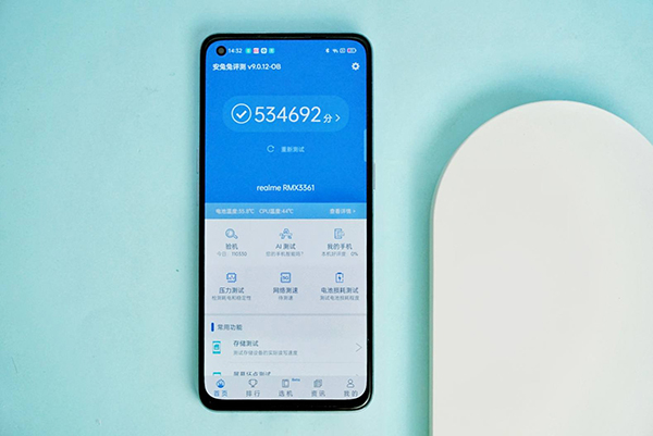 通過(guò)熟知的安兔兔經(jīng)過(guò)一輪跑分,實(shí)測(cè)CPU跑分可以達(dá)到15.4萬(wàn),GPU跑分可以達(dá)到15.6萬(wàn),總分達(dá)到了53.4萬(wàn)分,和驍龍865比較接近,性能有保障。