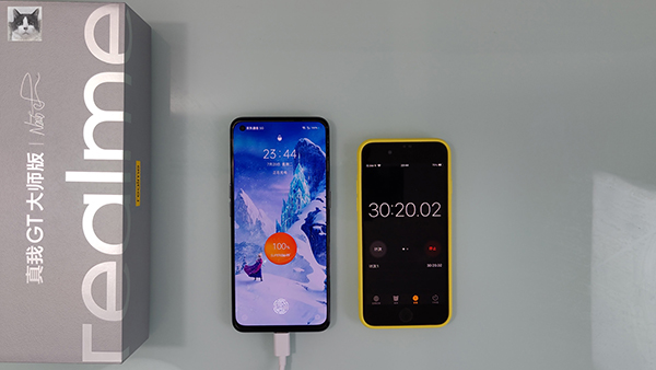 在這個充電方面,這次realme真我GT大師版采用的是一套65W快充方案,通過65W的智慧閃充給4300mAh的電池充電,5分鐘充入了28%,15分鐘充入61%,大約30分鐘即可將電量充滿,這主要是得益于這次realme GT大師版采用了全新的涓流充電技術(shù),保證安全、對電池傷害小的情況下,提升了200%的充電速度。
