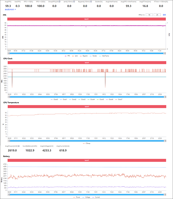 這一次realme真我GT大師探索版在后半程的幀率發(fā)生了較小幅度的降低,但整體還算平整的,反映到游戲過程也不會有明顯的掉幀出現(xiàn)。