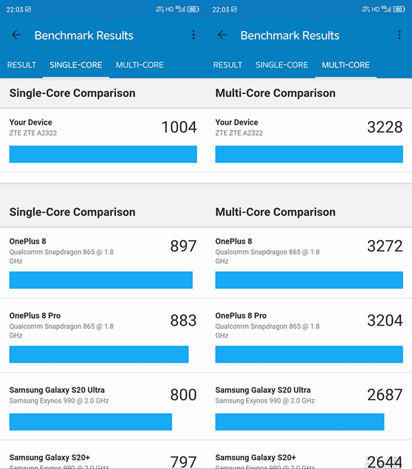 首先從基礎(chǔ)的CPU、GPU,以及AI跑分成績來看,我們可以確定的是Axon30 5G盡管很輕很薄,但確實(shí)發(fā)揮出了驍龍870應(yīng)有的性能水準(zhǔn)。