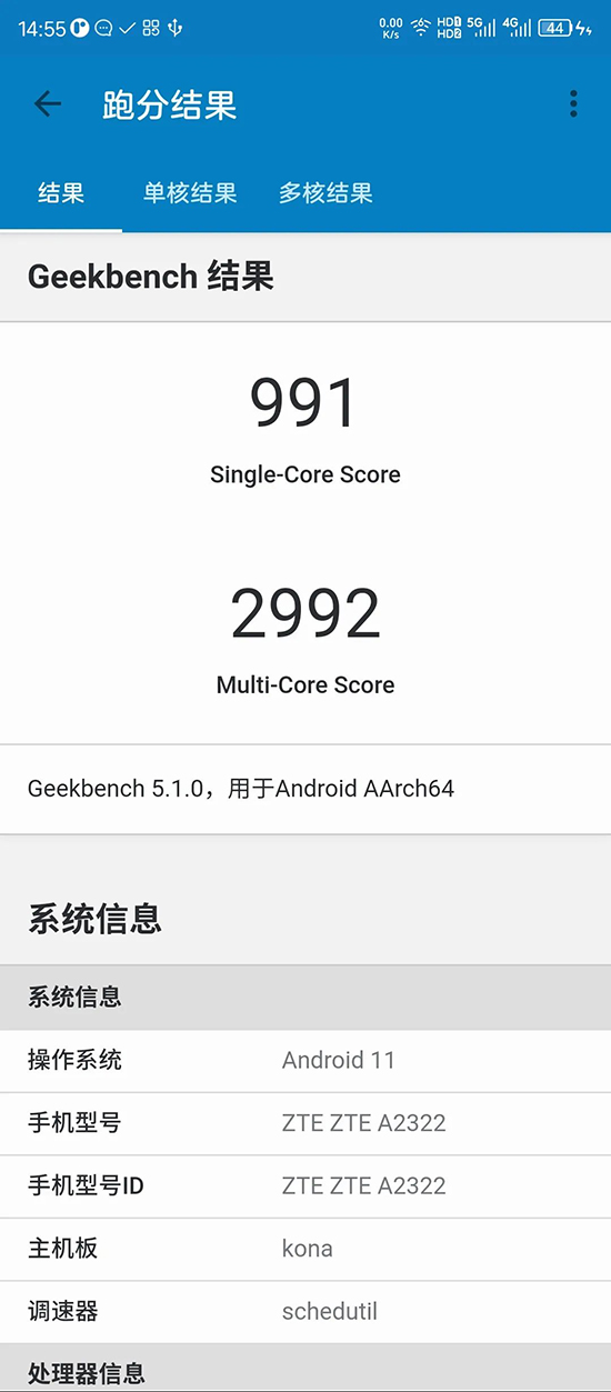 GeekBench 5.1中,它的單線程評分為991,多線程評分為2992。