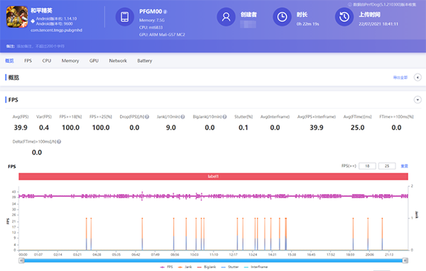 在《和平精英》游戲測試中,均衡畫質(zhì)設(shè)置下,可以開啟超高幀數(shù),其余為特效全開。軟件記錄到的平均幀數(shù)為39.9幀,游戲過程的幀數(shù)波動比較小,開車、對戰(zhàn)等場景畫面也很穩(wěn)定。