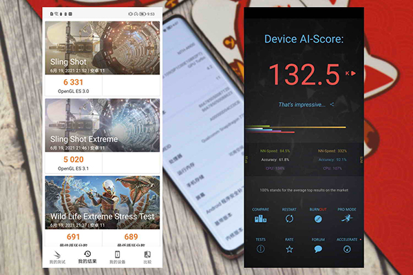 這里用幾款跑分軟件進(jìn)行一下測(cè)試,雖然跑分成績(jī)并不完全代表設(shè)備好壞,但是跑分依舊是最好的衡量設(shè)備的重要參考指標(biāo),在極客跑分中,運(yùn)算跑分9135,單核跑分3466,多核跑分10772,3D Mark的Sling Shot為6331,Sling Shot Extreme為5020,AI Benchmark的層級(jí)為132.5k,無(wú)論是處理器、顯卡還是AI算力方面,榮耀50搭載的驍龍778G的跑分成績(jī)都處于中上等。