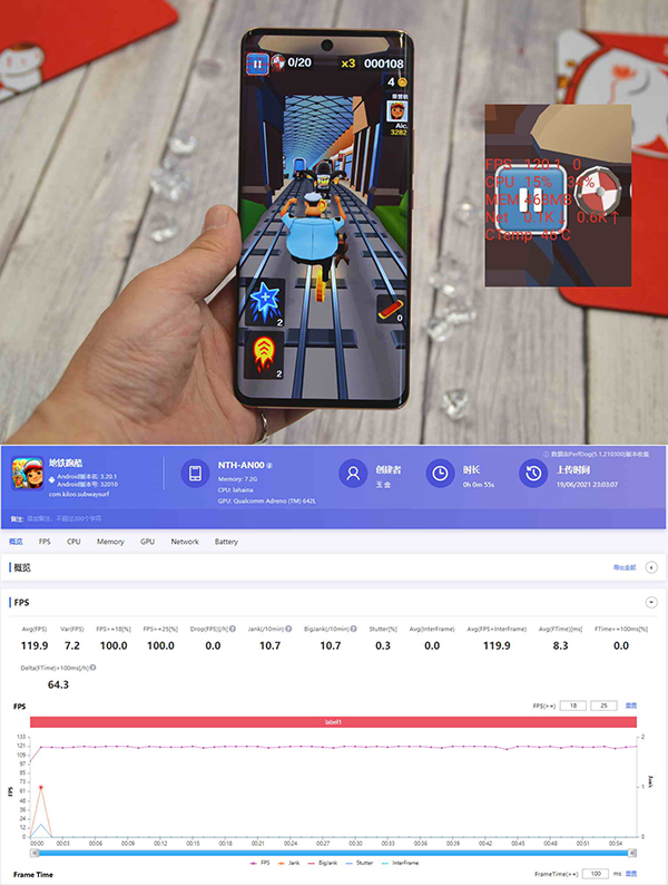 從處理所帶的字母“G”也能看出,驍龍的G系列均是主打游戲方面,搭載驍龍778G的榮耀50在游戲方面同樣也有著非常不錯(cuò)的表現(xiàn),這里用榮耀50試玩了10分鐘左右的三款主流的手游,和平精英的測(cè)試幀率39.9Hz,幾乎接近滿(mǎn)幀,王者榮耀則是保持60Hz的滿(mǎn)幀狀態(tài),支持120Hz的地鐵跑酷更是達(dá)到了119.9Hz的測(cè)試結(jié)果,三款手游的進(jìn)程均非常流暢,無(wú)卡頓現(xiàn)象,運(yùn)行各種幀率的手游都無(wú)壓力。