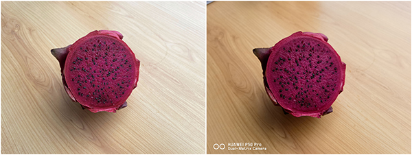 如果從所見(jiàn)即所得的角度出發(fā),iPhone 12 Pro直出樣張相對(duì)更接近當(dāng)時(shí)人眼所看到的真實(shí)場(chǎng)景。但要說(shuō)物體真實(shí)色彩還原,華為P50 Pro則更勝一籌,無(wú)論被拍攝主體還是桌面色彩,都更貼近原本應(yīng)該呈現(xiàn)出來(lái)的顏色觀感。