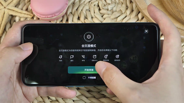另外,如果大家完全不想被信息打擾,以及不想因為誤操作而出現(xiàn)不小心退出游戲等狀況的話,還可以開啟全沉浸模式,這樣就能一鍵屏蔽通知、來電、鬧鐘、控制中心、導(dǎo)航手勢等,完全避免了各種誤操作的情況出現(xiàn),讓游戲體驗更加沉浸。