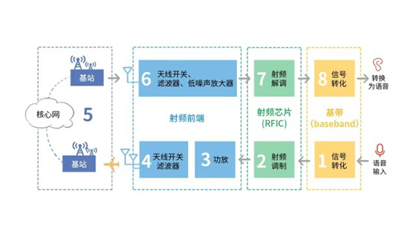 對(duì)于一款支持5G網(wǎng)絡(luò)的智能手機(jī)來(lái)說(shuō),除了要擁有5G基帶外,還要通過(guò)手機(jī)射頻系統(tǒng)來(lái)實(shí)現(xiàn)5G網(wǎng)絡(luò),主要包括天線、射頻芯片和射頻前端等,其功能主要是收發(fā)無(wú)線電磁波,以及實(shí)現(xiàn)電磁波信號(hào)和數(shù)字信號(hào)之間的轉(zhuǎn)換。