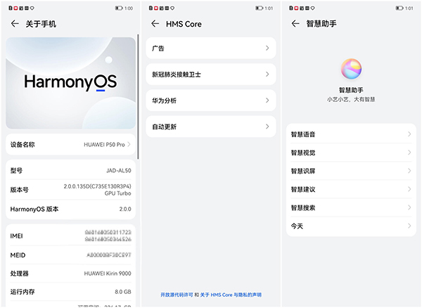 P50系列手機(jī)是華為第一款發(fā)售的時(shí)候就預(yù)裝鴻蒙系統(tǒng)的手機(jī),其實(shí)鴻蒙2.0發(fā)布已經(jīng)有一段時(shí)間了,好多小伙伴也是升級(jí)到了鴻蒙系統(tǒng)體驗(yàn)了一段時(shí)間了,這次的P50系列直接預(yù)裝好鴻蒙系統(tǒng),買來(lái)直接用,其實(shí)如果你不去看設(shè)置關(guān)于本機(jī)里的系統(tǒng)屬性,和之前采用安卓的華為平?jīng)]有太大的區(qū)別,但是HarmonyOS 2也有很多值得體驗(yàn)的小便利,比如小卡片功能,以及穩(wěn)定流暢的系統(tǒng)。而諸如之前就有的指關(guān)節(jié)敲擊截屏等都是保留下來(lái)的。