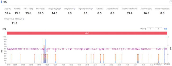 半小時(shí)游戲平均幀率59.4幀,從圖中看是有幾處掉幀的地方,不過對(duì)于游戲體驗(yàn)來說感知并不明顯。特別是在開啟點(diǎn)按靈敏度之后,開槍的反應(yīng)速度有稍許提升。