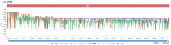游戲結(jié)束時(shí)手機(jī)最高溫度為43.3℃,還好,經(jīng)歷過三條八之后,這種溫度都不叫事兒。CPU方面,除了小核是全程滿載,大、中核都有不同程度的降頻,應(yīng)該是為功耗做出的考量。