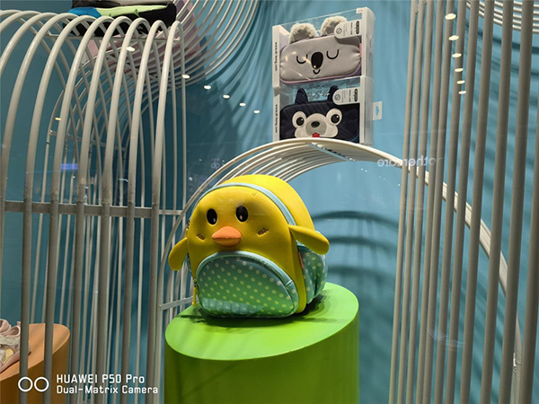 在室內(nèi)光線比較密集的環(huán)境中,光線會導致色彩出現(xiàn)一定的變化,這也是肉眼接收色彩信息的規(guī)律??梢钥吹较旅孢@個黃色的小書包,華為P50 Pro還原了光線影響之后的書包色彩,右側的黃色會更為明亮。反觀對比手機就會偏暗一些,包括陰影部分也比肉眼更突出。