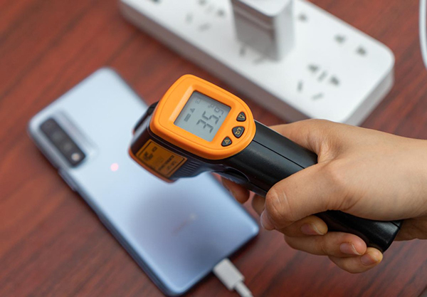充電過(guò)程中,我用專業(yè)測(cè)溫儀檢測(cè)了手機(jī)、充電器,兩者都沒(méi)有太明顯的發(fā)熱現(xiàn)象,室溫29度,手機(jī)背部的溫度只有35度左右,充電器溫度也只有37度左右,摸起來(lái)溫溫的,不燙手,充電安全方面不需要擔(dān)心。