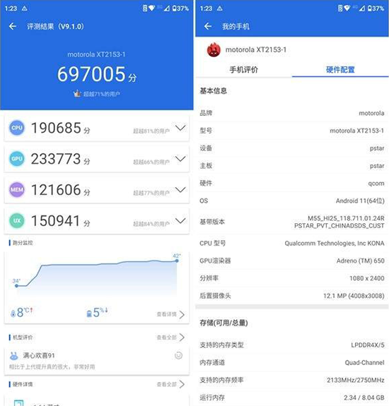 在這個(gè)核心配置方面,摩托羅拉Edge S Pro采用了高通次旗艦級(jí)5G處理器:驍龍870,這款芯片在edge s上大受好評(píng),Edge S Pro繼續(xù)沿用也在情理之中。這個(gè)驍龍870采用7nm制程,Kryo 585 8核架構(gòu),主頻最高達(dá)3.2GHz,大幅提升性能的同時(shí),也全面提升了圖形處理能力和AI處理能力。配合LPDDR5+增強(qiáng)版UFS3.1的頂級(jí)存儲(chǔ)配置,在保證大型游戲流暢運(yùn)行的同時(shí),也帶來了更高效更快捷的日常APP使用體驗(yàn)。此外,Edge S Pro還采用了運(yùn)存擴(kuò)展技術(shù),可以將3GB的手機(jī)存儲(chǔ)空間用于拓展運(yùn)存,比如8+128G版本的手機(jī),相當(dāng)于擁有最大11GB的運(yùn)存。