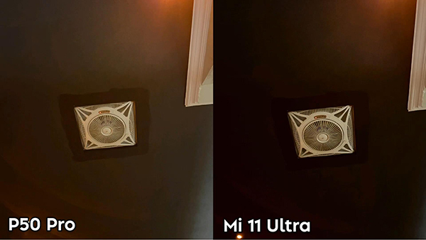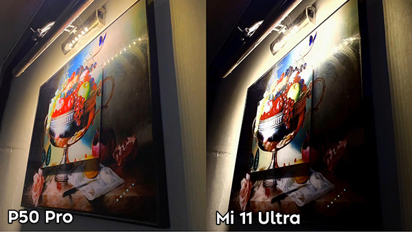 畫框右側(cè)光線較弱,小米11 Ultra呈現(xiàn)了少數(shù)紋理細(xì)節(jié),多數(shù)都是一片黑。