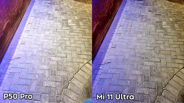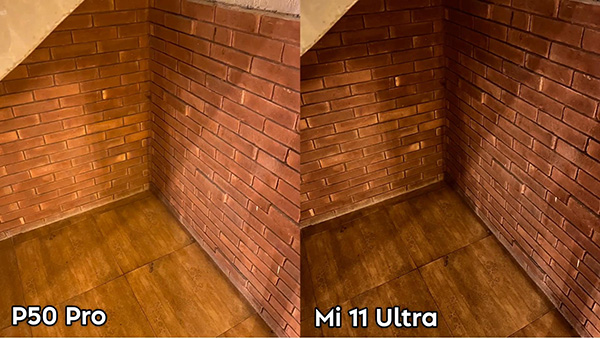 兩者最大的差異在墻體,華為P50 Pro能呈現(xiàn)墻體磚縫的淪落,小米11 Ultra涂抹感很嚴(yán)重。