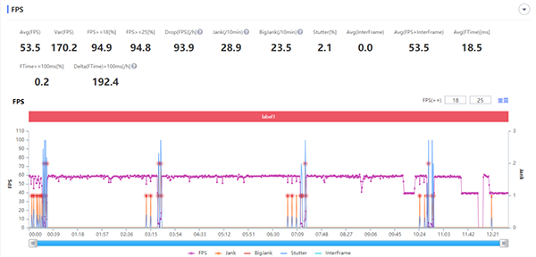 而到了《原神》這一塊,小米MIX4的表現(xiàn)就有些不盡人意了,雖然平均幀率有53.5幀,但從幀率圖中可以看到,在11分鐘后幀率就下降到40幀左右,流暢性自然也大幅度下滑。