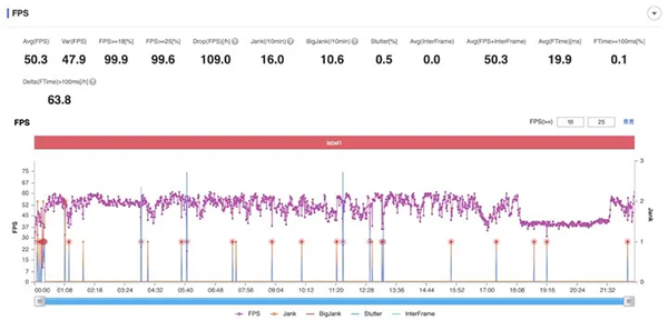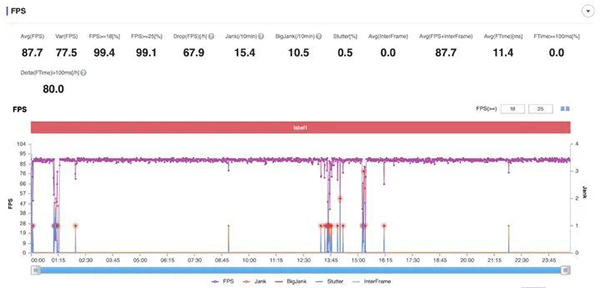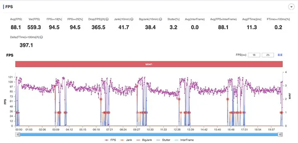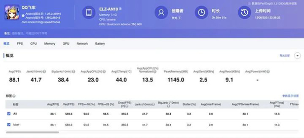 20分鐘的QQ飛車游戲,平均幀率為88FPS,視覺上還是非常絲滑的。