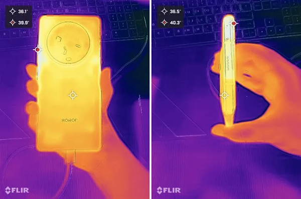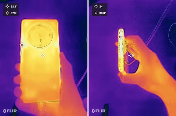 通過紅外熱成像儀可以觀察到,Magic3 Pro熱源集中在頂部邊框,以及音量鍵附近。
