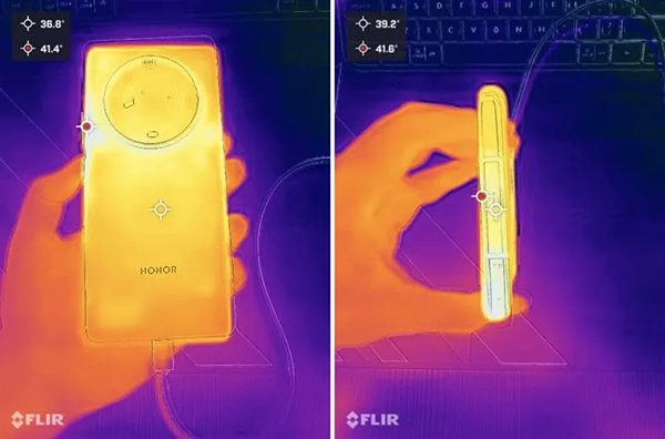 還有一點,榮耀在機身內部設置了17顆溫度傳感器,可以實時識別用戶應用場景,AI感知手機表面溫度和環(huán)境溫度,動態(tài)調整熱管理方案。