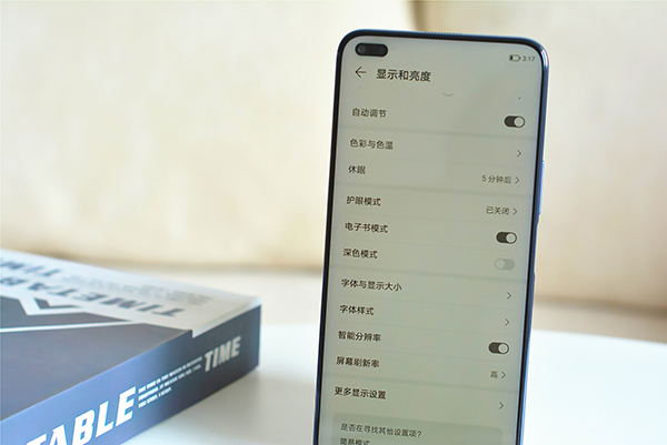 在手機(jī)護(hù)眼方面,榮耀X20支持原彩顯示、硬件級護(hù)眼、護(hù)眼模式、深色模式和電子書模式五重護(hù)眼配置,下圖是其中的電子書模式,當(dāng)你開啟這個功能之后,白色的顯示界面就會變成微微偏黃的黑白顯示,看起來有一種kindle的既視感,屏幕發(fā)出的藍(lán)光明顯降低,如果你喜歡長時間用手機(jī)看書,這應(yīng)該是一個非常實(shí)用的功能。