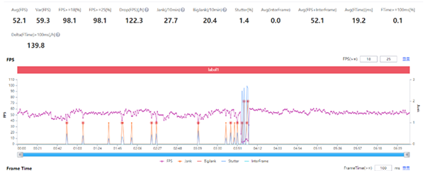 第二個咱們直接上手機(jī)折磨者:原神,咱們直接跳過各種什么Turbo看結(jié)果,最高畫質(zhì)下平均幀率52.1,機(jī)身最高溫度的位置(同上)48.1℃。