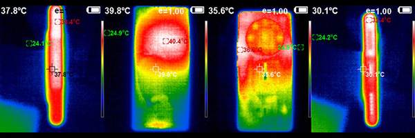 此時測量手機(jī)溫度,正面最高溫40.4℃出現(xiàn)在屏幕上方中央部位,背面高溫36.6℃,大約在后置攝像頭模組和側(cè)邊按鍵中間位置,金屬中框最高溫38.4℃,出現(xiàn)在頂部靠近邊緣位置。實(shí)際握持感來說,因?yàn)橐驗(yàn)橹锌蚝捅巢康臏囟认鄬Φ鸵恍?,所以握持僅為溫?zé)釠]有太強(qiáng)熱感,高負(fù)載和長時間游戲的握持體驗(yàn)不錯。
