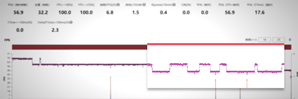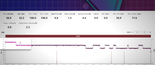 第二局也是如此,但由于這把陷入了膠著,足足打了我25分鐘,而且這局開局就是70幀,然后隨著時(shí)間的延長手機(jī)開始出現(xiàn)發(fā)熱情況,可以看到幀率會(huì)有規(guī)律的50到60幀之間徘徊,最終整局的平均幀率只有56.9。