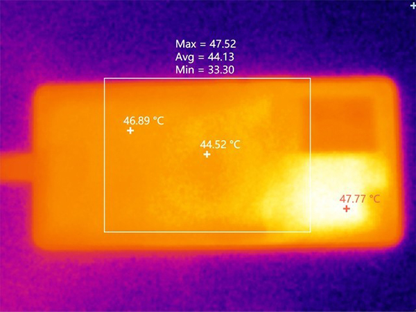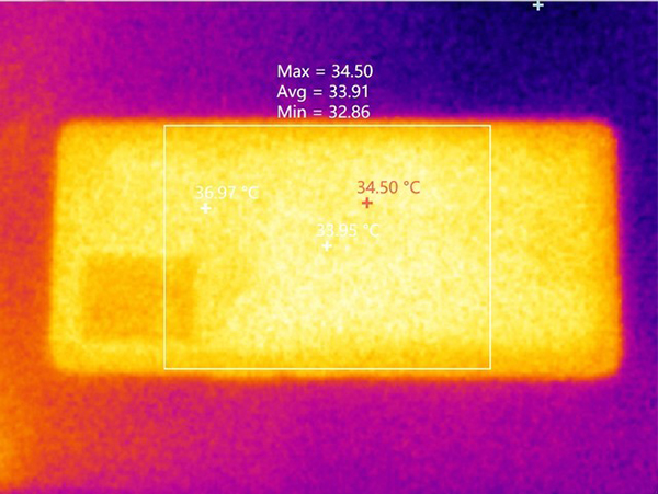 游戲開始前,iQOO 8 Pro機身背部平均33.91攝氏度、最高34.5攝氏度,而經(jīng)歷了1小時30分鐘游戲后iQOO 8 Pro機身背部平均44.13攝氏度、最高47.52攝氏度,機身背部平均溫度上升了10余攝氏度,可以看出iQOO 8 Pro在溫度控制方面的確是下了一番功夫的。