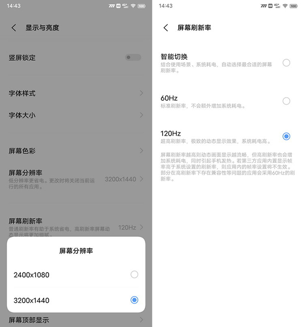 這意味著什么?這代表著iQOO 8 Pro此次不僅提供了3200*1440的頂級分辨率,而且還具備120Hz的高刷新率,并且1440P和120Hz刷新率可以支持同時開啟。