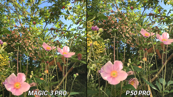 第四組照片拍攝的如同畫一般漂亮,但是如果你仔細(xì)看的話,還是能夠分辨出榮耀Magic3 Pro和華為P50 Pro之間的一些效果上的區(qū)別。