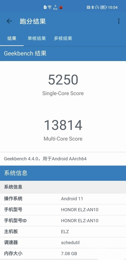 Geekbench是一款專(zhuān)門(mén)測(cè)試手機(jī)CPU性能的軟件,CPU的性能水平直接決定了手機(jī)在日常使用,運(yùn)行大型程序,啟動(dòng)APP等應(yīng)用場(chǎng)景中的速度和流暢度。在這一環(huán)節(jié)中,我們使用了Geekbench 4.4.0的版本進(jìn)行測(cè)試,榮耀Magic3 Pro單核性能為5250分,多核性能為13814分,表現(xiàn)出色。