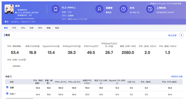 機(jī)圈現(xiàn)在流行不服跑個《原神》,這款游戲可以說是游戲黑洞,非??简炇謾C(jī)性能。榮耀Magic3 Pro性能模式下,高畫質(zhì)60幀設(shè)置,20分鐘幀率測試,平均53.4fps,妥妥的頂級旗艦表現(xiàn),很穩(wěn)很流暢。