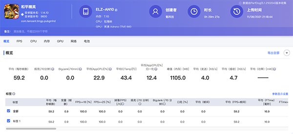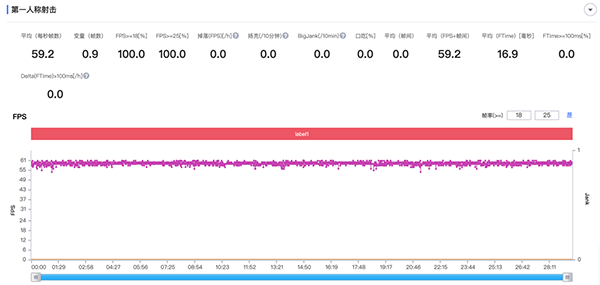 《和平精英》流暢60幀測試,29分鐘平均幀率59.2,游戲過程中基本全程穩(wěn)定,高負(fù)載場景下沒遇到任何掉幀現(xiàn)象。