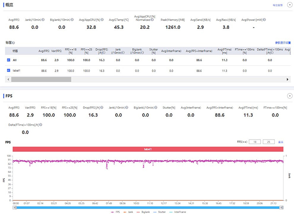 《王者榮耀》在此前升級了90幀模式之后,對手機的游戲性能提出了一定挑戰(zhàn),而榮耀Magic3 Pro在90幀、極致畫質下一局下來跑出平均88.9幀(波動3.5),整個曲線也是非常平順;CPU平均溫度41.7℃,傳導到機身后體感上同樣也只是溫熱。