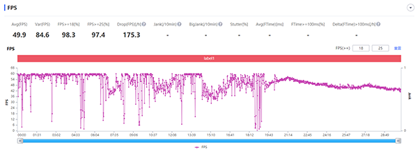 在《使命召喚手游》中,可以開到標(biāo)準(zhǔn)畫質(zhì)90幀模式,整個(gè)游戲體驗(yàn)是非常流暢的,除切換地圖時(shí),完全沒有發(fā)生過卡頓,最終30分鐘游戲平均幀率為87.1幀。