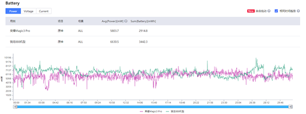 從測(cè)試數(shù)據(jù)可以看出,榮耀在這款機(jī)型上并沒(méi)有采取“前期全力跑滿,中后期過(guò)熱降頻”的激進(jìn)策略,而是犧牲一定的性能,把長(zhǎng)時(shí)間高負(fù)載運(yùn)行的溫度和功耗控制得更好,讓整體的游戲體驗(yàn)更均衡,不會(huì)有中途嚴(yán)重掉幀的割裂感。