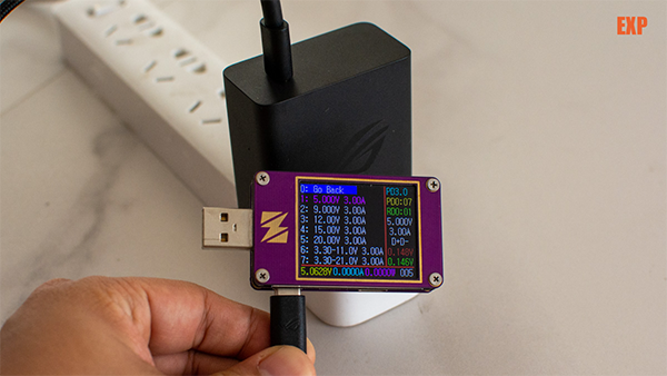 騰訊ROG游戲手機(jī)5s Pro標(biāo)配的是一個(gè)支持65W快充的單USB Type-C接口PD充電頭,支持兼容QC5.0和PD3.0協(xié)議,最高輸出規(guī)格為20V 3.25A,然而由于騰訊ROG游戲手機(jī)5s Pro標(biāo)配的充電線并沒(méi)有附帶E-Marker芯片,因此實(shí)際檢測(cè)出來(lái)為最高20V 3A的規(guī)格,相當(dāng)于60W充電功率。