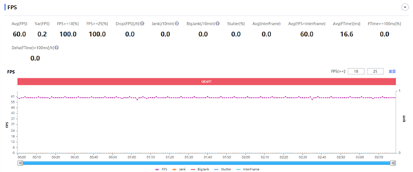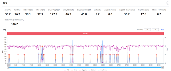 從游戲表現(xiàn)來看,在打怪、沖刺跑圖時,波動并不是很大,一般都能保持在59幀左右,即便算上地圖加載導(dǎo)致的幀率波動外,平均幀率也有56幀。