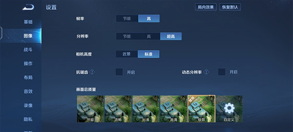 作為知名度最高的MOBA類國產(chǎn)手游《王者榮耀》,當(dāng)然也要測試一下,同樣把畫質(zhì)拉到最高,關(guān)閉動態(tài)分辨率。