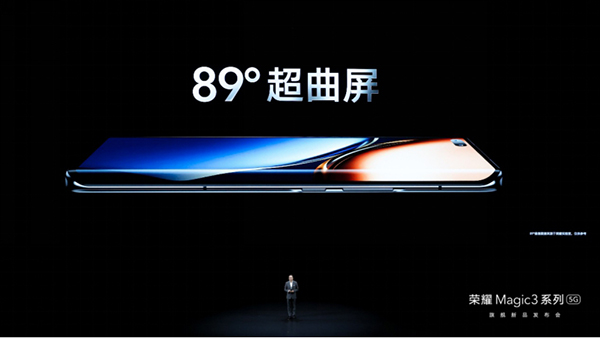 在這個屏幕方面,榮耀Magic3至臻版還帶來89°超級曲面屏,營造出屏幕無邊無際的視覺沖擊力。上下曲邊微微外延,如將水杯倒?jié)M,流體邊緣滿而不溢,匯聚成充滿張力的完美曲面,令人過目難忘。邊框被進一步收窄,屏占比高達94.86%,既帶來更完美的沉浸感,也更加貼合手掌,握持起來極為舒適。